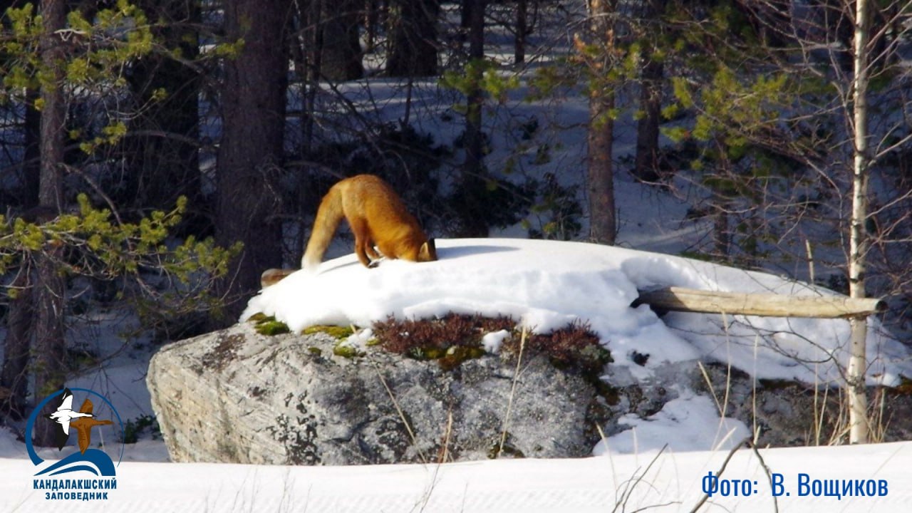 В городах снег активно тает, а в лесу сугробов еще достаточно – на радость его обитателям. Инспектору Кандалакшского заповедника удалось поймать в фотокадр лисицу во время охоты.