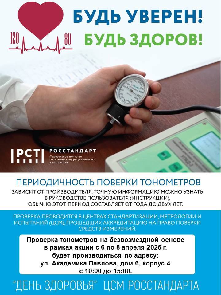 , С 6 по 8 апреля 2026 года Федеральное агентство по техническому регулированию и метрологии (Росстандарт) и подведомственные ему организации проводят Всероссийскую акцию «Будь уверен! Будь здоров!», приуроченную к Всемирному дню здоровья.