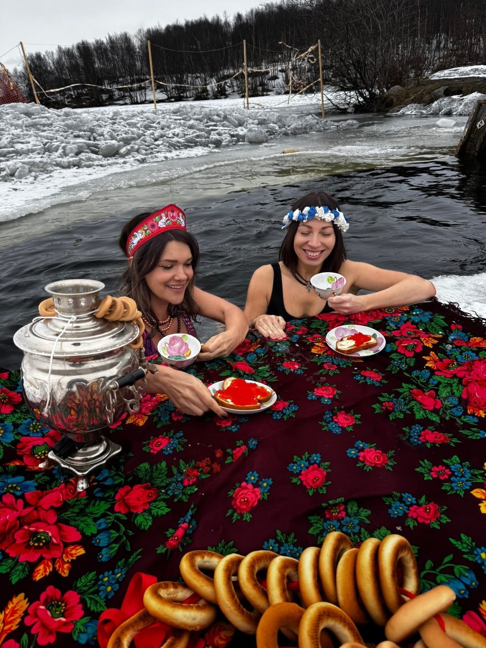 Девчонки из сообщества «Моржи Мурманска» доказали, что закаливание – это не только про стальной характер, но и про чистое творчество. Они устроили чаепитие прямо в проруби: с яркими кокошниками, самоваром и горой сушек. Ведь даже в северном климате всегда есть место для улыбки и такого бодрого, по-настоящему эстетичного утра