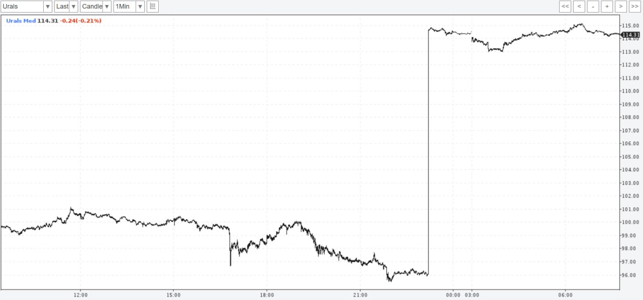 Сегодня ночью на фоне введенной блокады Ормузского пролива ценник на российскую нефть сорта Urals скачкообразно вырос сразу на 20% (в район 115$ за барр.).