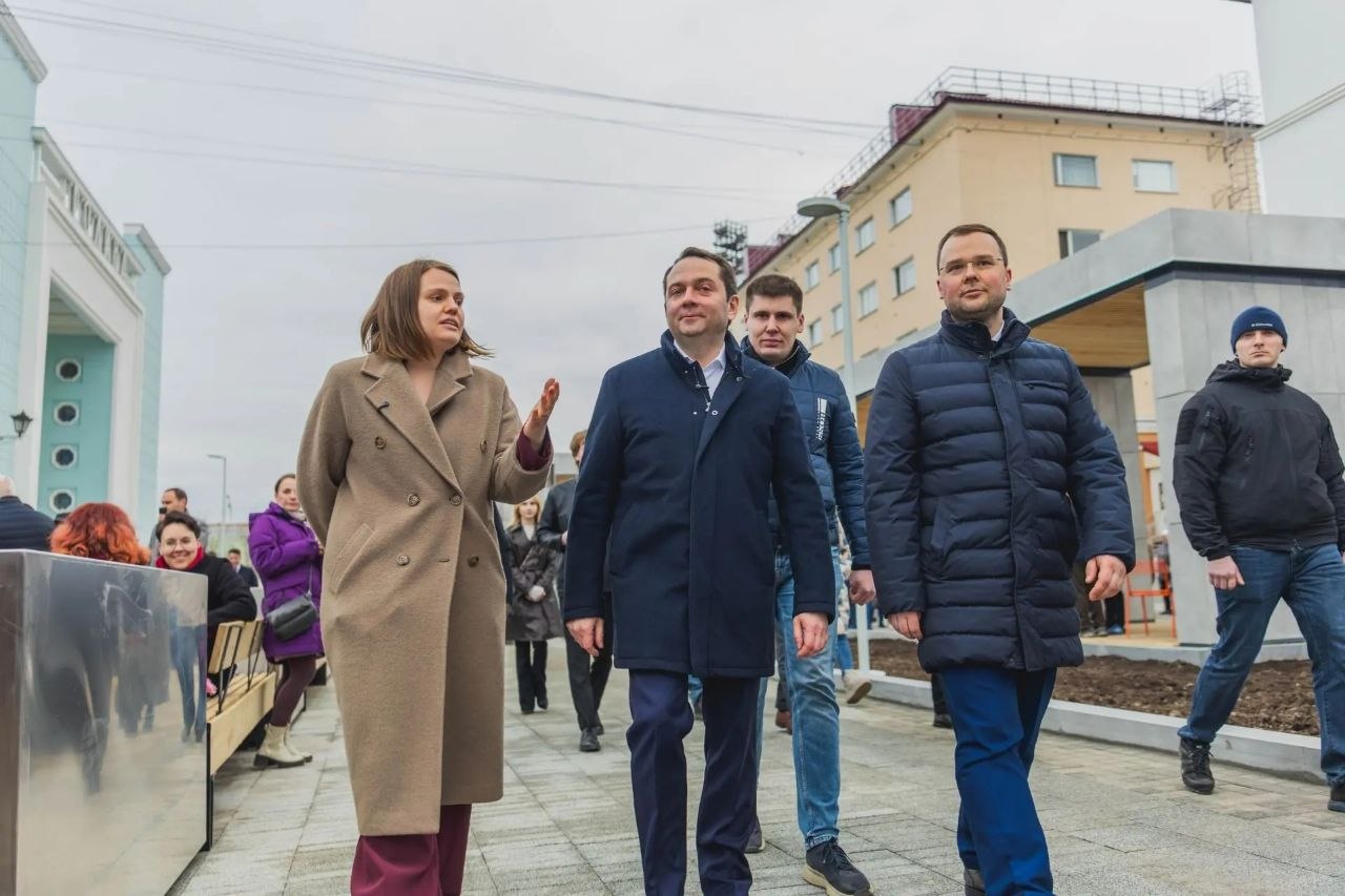 Почетными гостями праздника стали губернатор Мурманской области Андрей Чибис и глава города Мурманска Иван Лебедев, которые пообщались с горожанами и проинспектировали ход работ на площади Пять Углов.