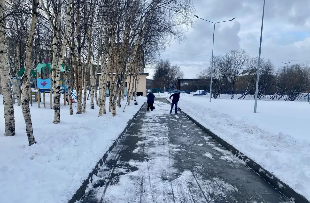 Снег отступил, но последствия мощного циклона ещё не до конца ликвидированы. Завтра утром мурманские школьники пойдут на занятия. Наша обязанность — обеспечить им безопасный маршрут.
