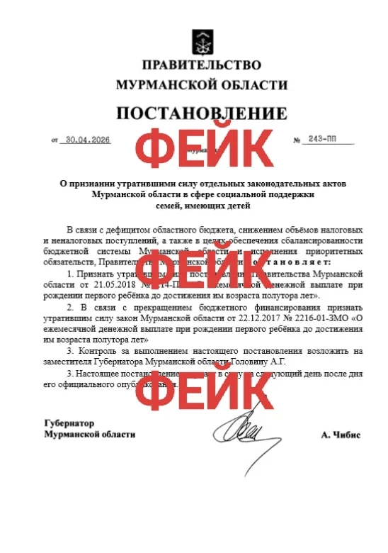Внимание: фейковое постановление правительства Мурманской области