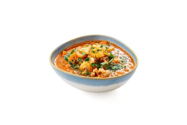 Этот сытный и вкусный суп станет отличным вариантом для обеда в прохладные дни. Полба добавляет блюду насыщенности и уникального вкуса, фасоль придаёт молочную текстуру, а вся гамма овощей и приправ делает его неповторимо ароматным.