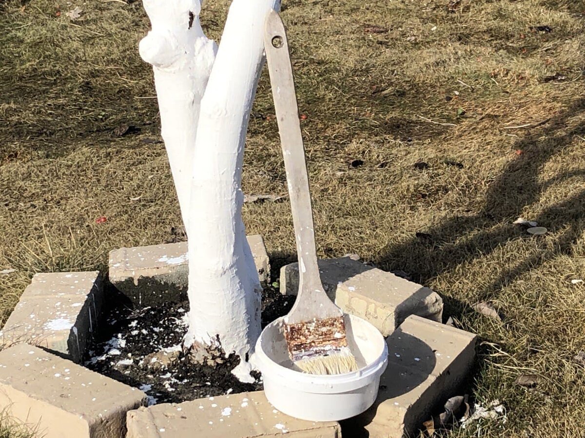 - Защита от солнечных ожогов: зимой кора деревьев подвергается сильным морозам, а в период оттепелей под воздействием солнца может загадочно нагреваться и трескаться. Побелка стволов отражает солнечные лучи, предотвращая резкие перепады температуры.