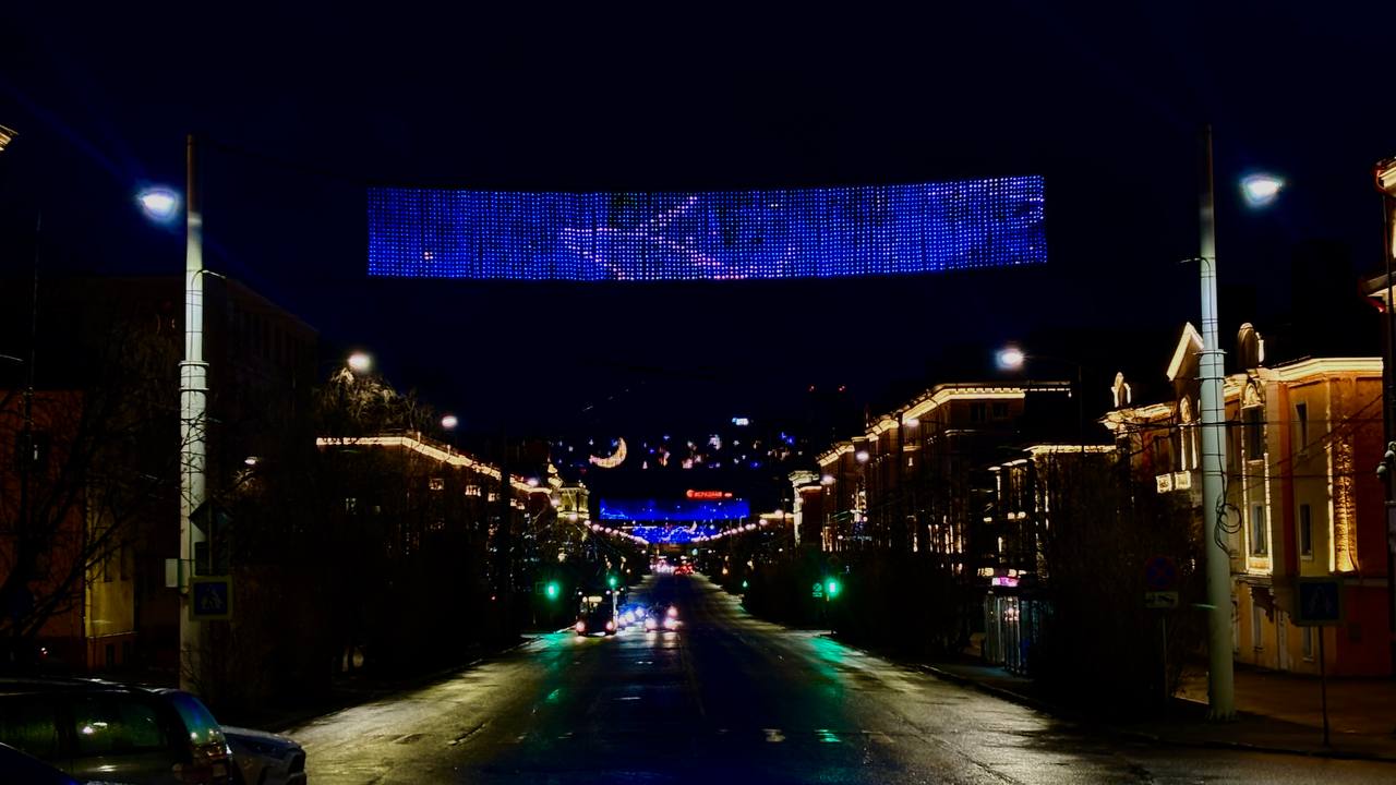 Над проспектом Ленина включатся световые перетяжки в виде китов и звёзд, а на фасаде отеля «Азимут» появится символ акции — синий кит.