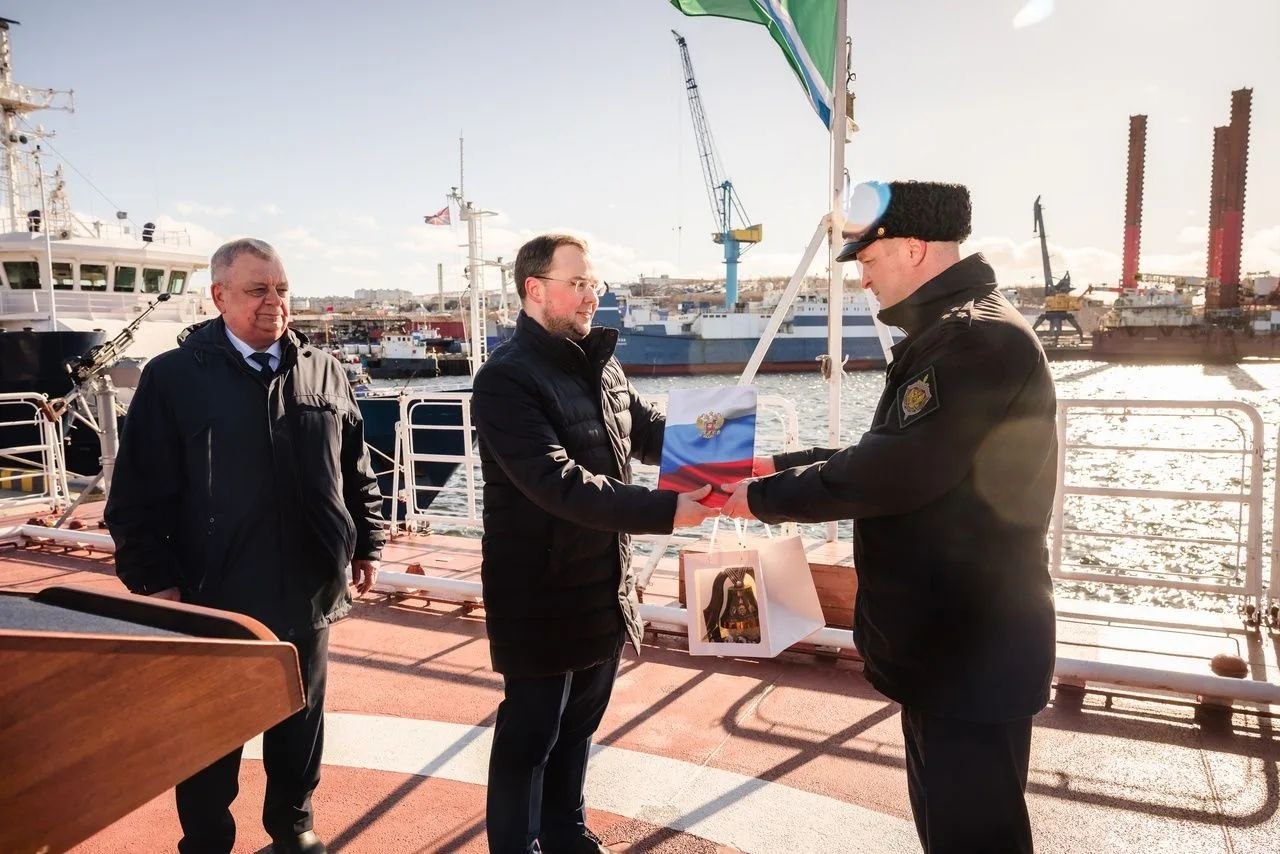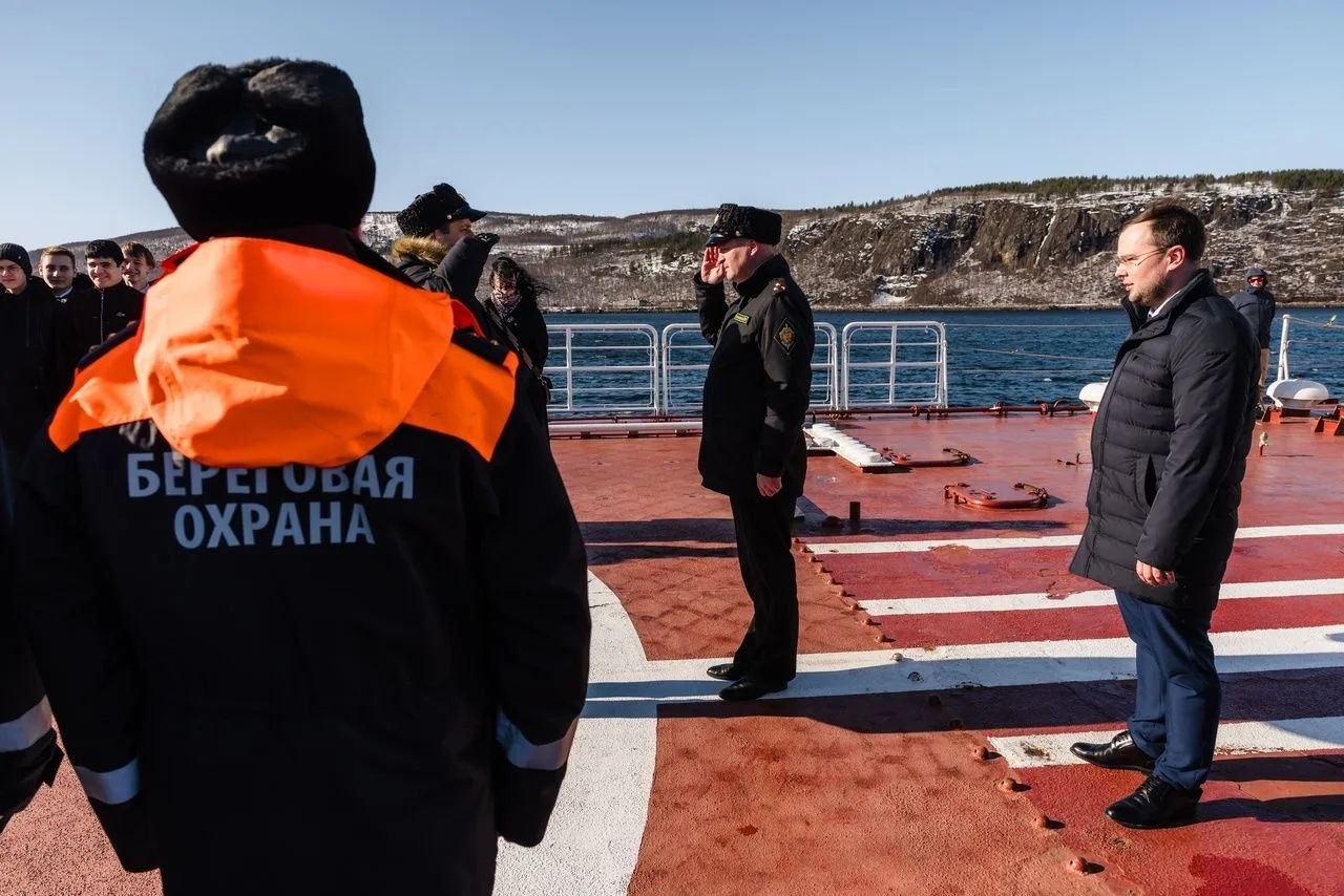 Вместе с ребятами гостем экипажа стал глава города Мурманска Иван Лебедев. В торжественной обстановке перед строем глава города и начальник отряда пограничных сторожевых кораблей Пограничного Управления ФСБ России по западному арктическому району капитан I ранга Андрей Меновщиков обменялись экземплярами подписанного ранее трехстороннего соглашения о сотрудничестве между отрядом ПСКР, администрацией города Мурманска и Советом депутатов города Мурманска.