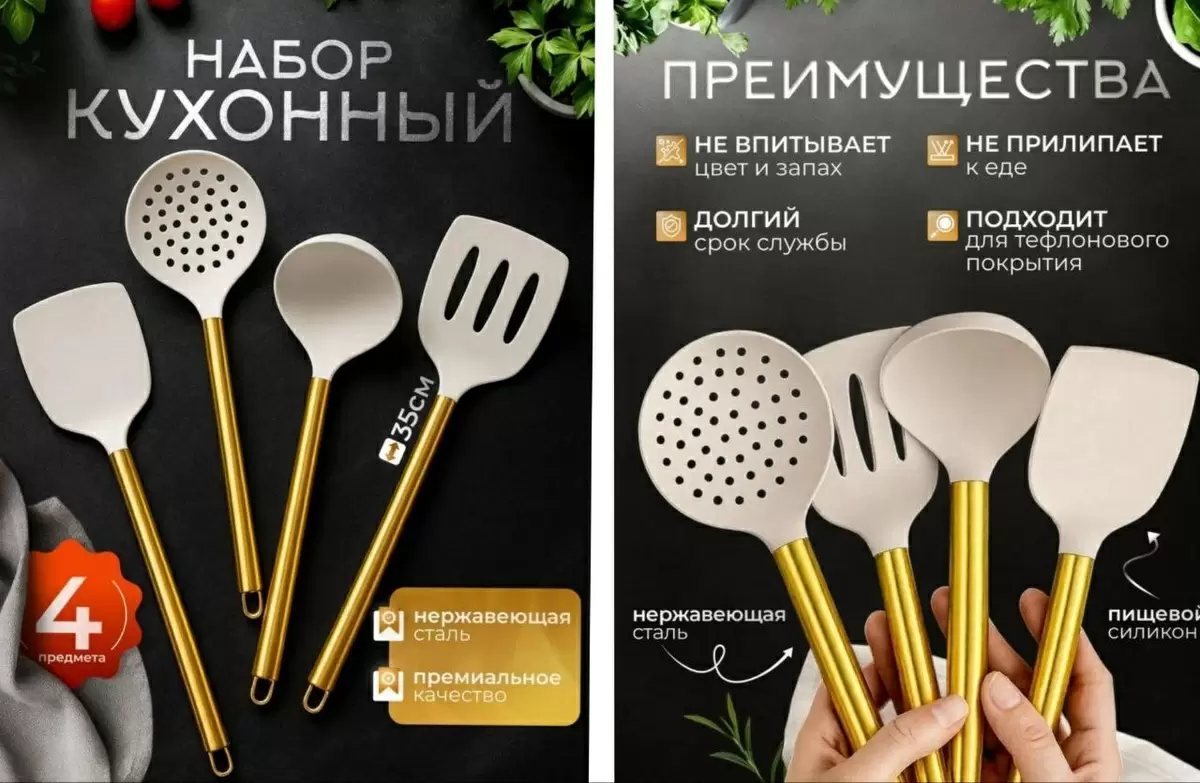 - Эргономичный дизайн: Каждое приспособление удобно удерживать в руке, что делает готовку более комфортной.