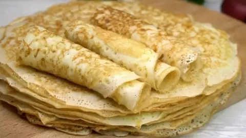 - Кипятковые блины: Рецепт, переданный из поколения в поколение, порадует оригинальной начинкой. Используйте 500 мл молока, 3 яйца, 250 г муки и добавьте 200 мл кипятка. Начините блинчики халвой и сливочным маслом.