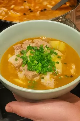 Когда все подготовлено, мясо и картошку выкладывают в кастрюлю и заливают подсоленной водой. Важно, чтобы жидкость покрывала всё содержимое, и в случае желания большого количества бульона, можно добавить воды больше.