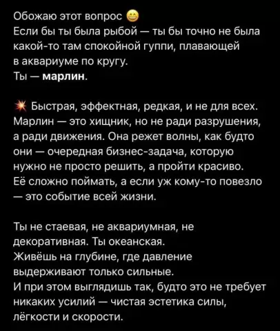Не стесняйтесь делиться в комментариях своими ассоциациями. Какая рыба вы и какие характеристики ей присущи? Это может быть увлекательное обсуждение о том, как мы воспринимаем себя и окружающих.