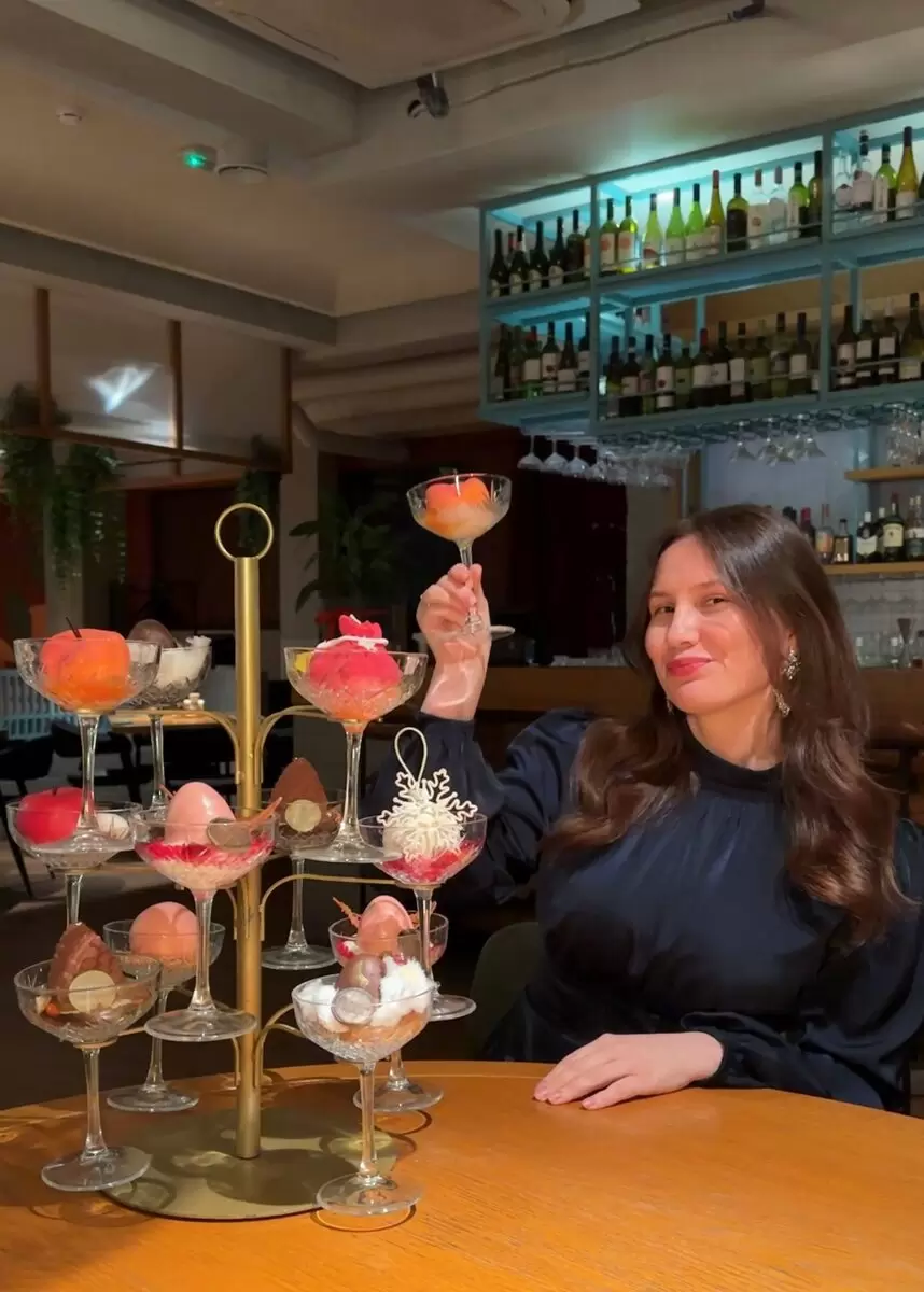 Только на мгновение взгляд останавливается на необычной сцене: на столе перед вами стоит целое дерево из десертов, каждая веточка вручную оформлена и держит свой характерный вкус. Это не просто меню, это маленький сезонный спектакль, где сладость и красота идут рука об руку.