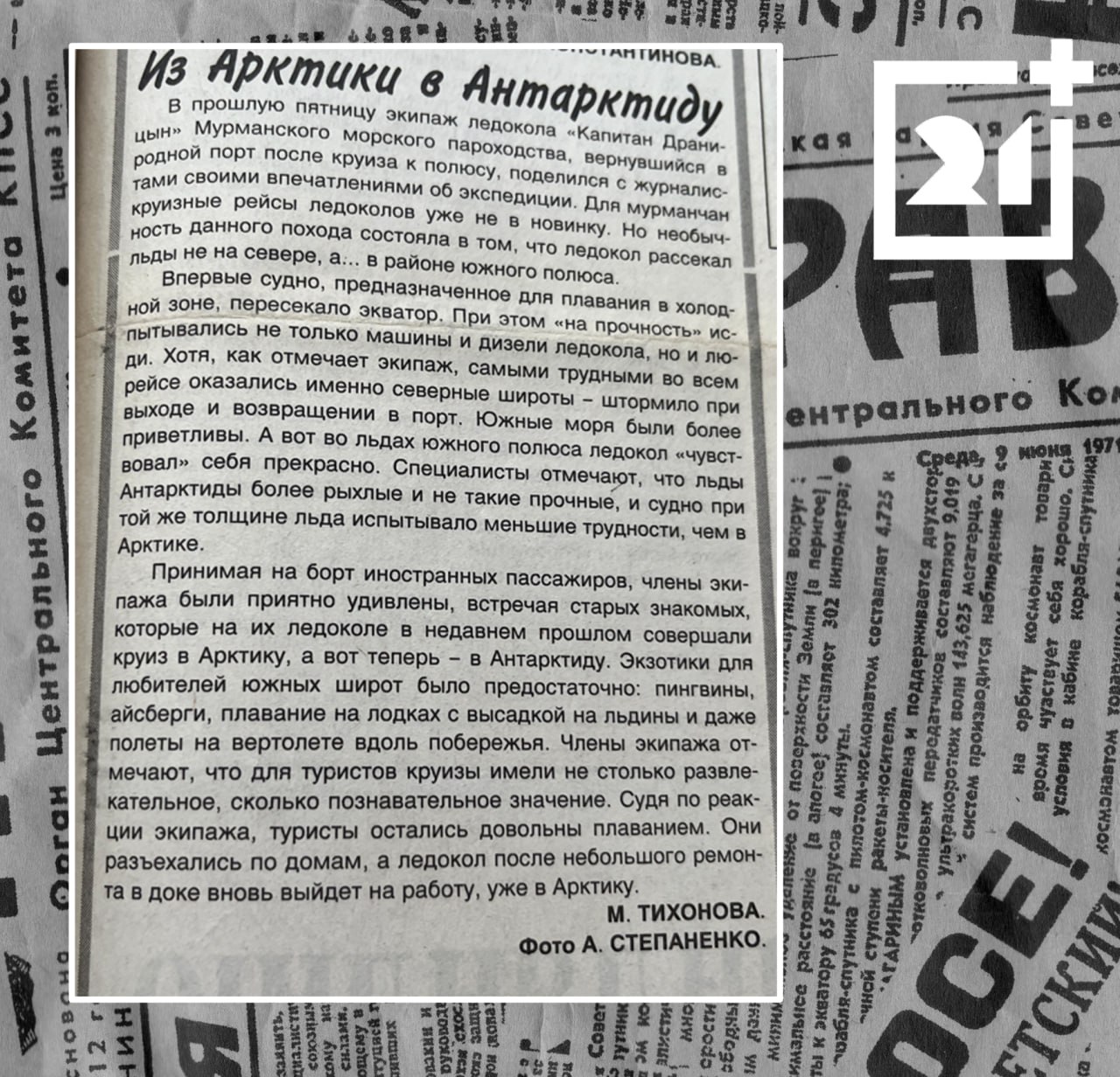 В начале 1995 года он впервые совершил путешествие не по северным, а по южным полярным морям – у берегов Антарктиды. О чем и сообщается в заметке «Из Арктики в Антарктиду», опубликованной в газете «Полярная правда» 21 февраля 1995 года.