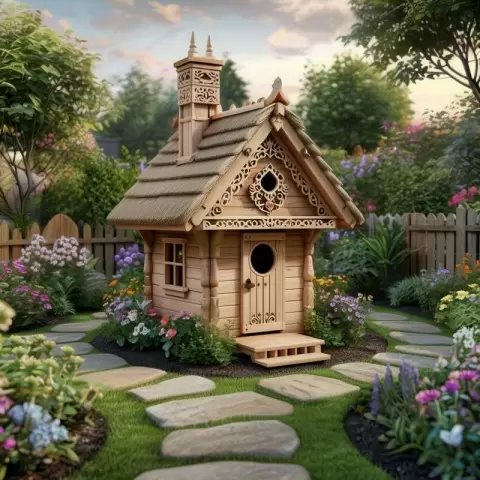 - Поилки: Если пруда нет, подойдут неглубокие емкости для воды. Керамические миски или плоские камни с углублениями – простые решения для обеспечения доступа к воде.