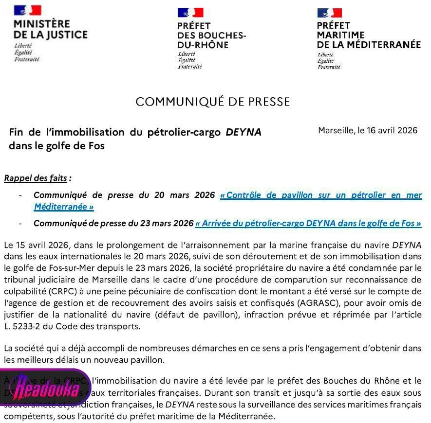 Судно, следовавшее из Мурманска под флагом Мозамбика, задержали месяц назад в западной части Средиземного моря. Французские власти арестовали его по подозрению в использовании подложного флага. Из-за неспособности подтвердить государственную принадлежность судна суд в Марселе назначил компании-владельцу «Deyna» штраф, сумма которого не раскрывается. После его уплаты танкер покинул территориальные воды Франции, сообщила Морская префектура Средиземноморья.