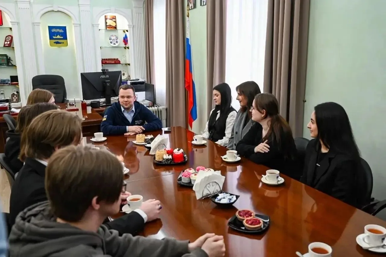 Молодые мурманчане, обучающиеся в Мурманском филиале Российской академии народного хозяйства и государственной службы, пришли в гости к главе города Мурманска Ивану Лебедеву