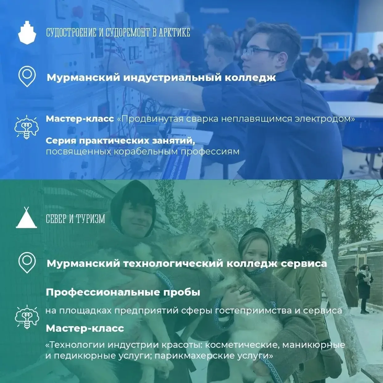 Уровень качества среднего образования и его популярность среди молодежи в Кольском Заполярье растет. Предприятияпартнеры участвуют в разработке образовательных программ, обновлении материальнотехнической базы и организации практики студентов, а доля трудоустройства выпускников по специальности составляет не менее 85 %.