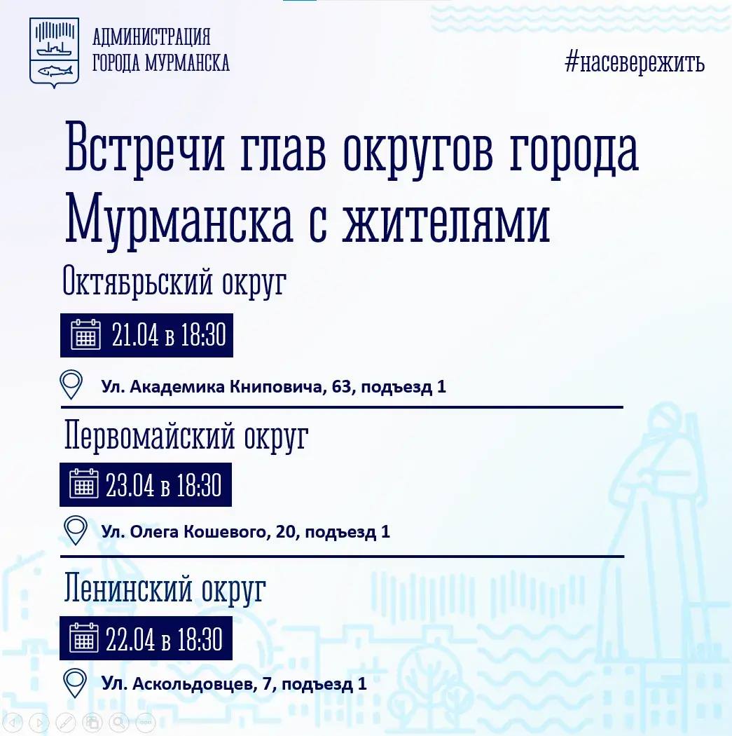 На этой неделе прошли традиционные выездные встречи начальников управлений административных округов с мурманчанами. Жители подняли широкий круг вопросов: от качества уборки дворов и состояния фасадов до ремонта подъездов, лифтов и детских площадок, а также благоустройства территорий и работы управляющих компаний.