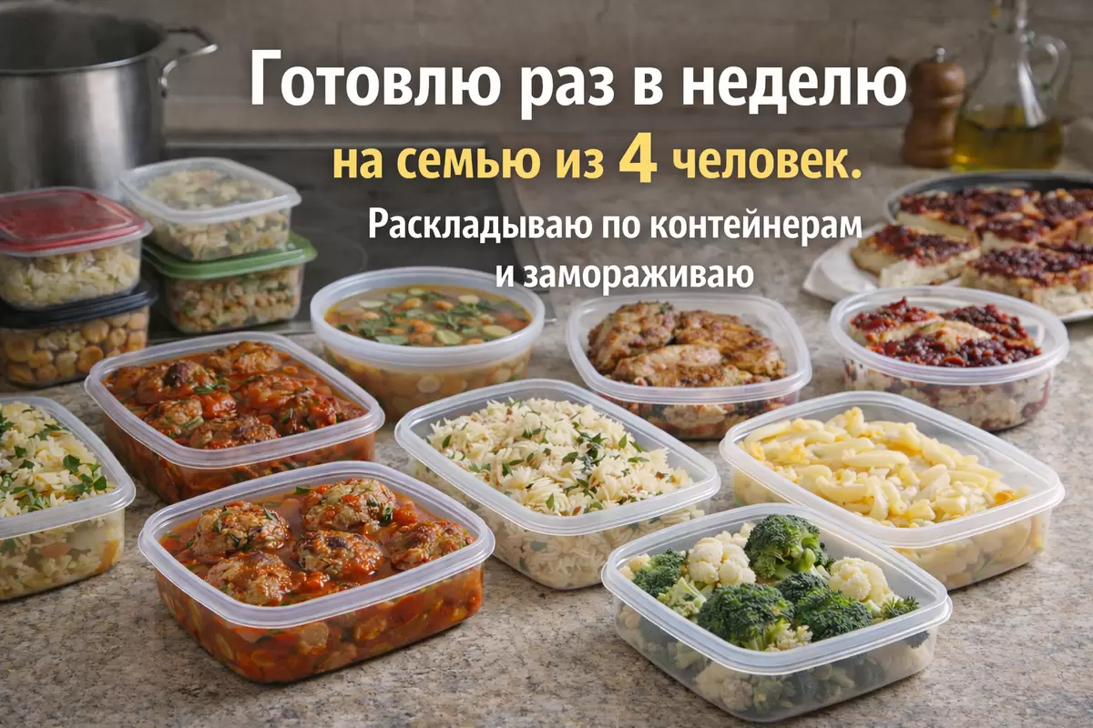 Приготовление сразу нескольких блюд — это как оптимизация бюджета: чем больше ты планируешь, тем меньше нервов тратишь. Важно лишь немного подготовиться и разработать план. После готовки еда распределяется по контейнерам, часть из которых отправляется в холодильник на ближайшие дни, а остальные — в морозильник для дальнейшего использования.