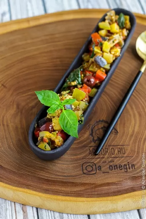 Для достижения наилучшего результата важно следовать определённой технологии: сначала баклажаны нарезаются кубиками размером 1-2 см и солятся, чтобы избавиться от лишней жидкости и предотвратить впитывание масла при жарке. Затем поэтапно добавляются все оставшиеся овощи. Важно тушить их не дольше, чем нужно — так они сохранят свою текстуру и все полезные свойства.