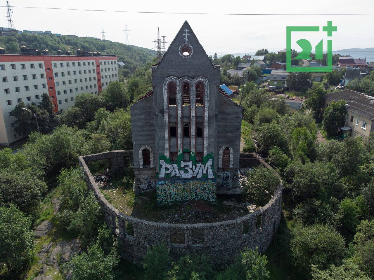 Следующим местом станет одна из самых красивых заброшек нашего региона - мурманский Нотр-Дам в районе Жилстроя. Готическую церковь начали строить в 1989 году, за несколько лет до распада СССР, но так и не довели проект до конца.