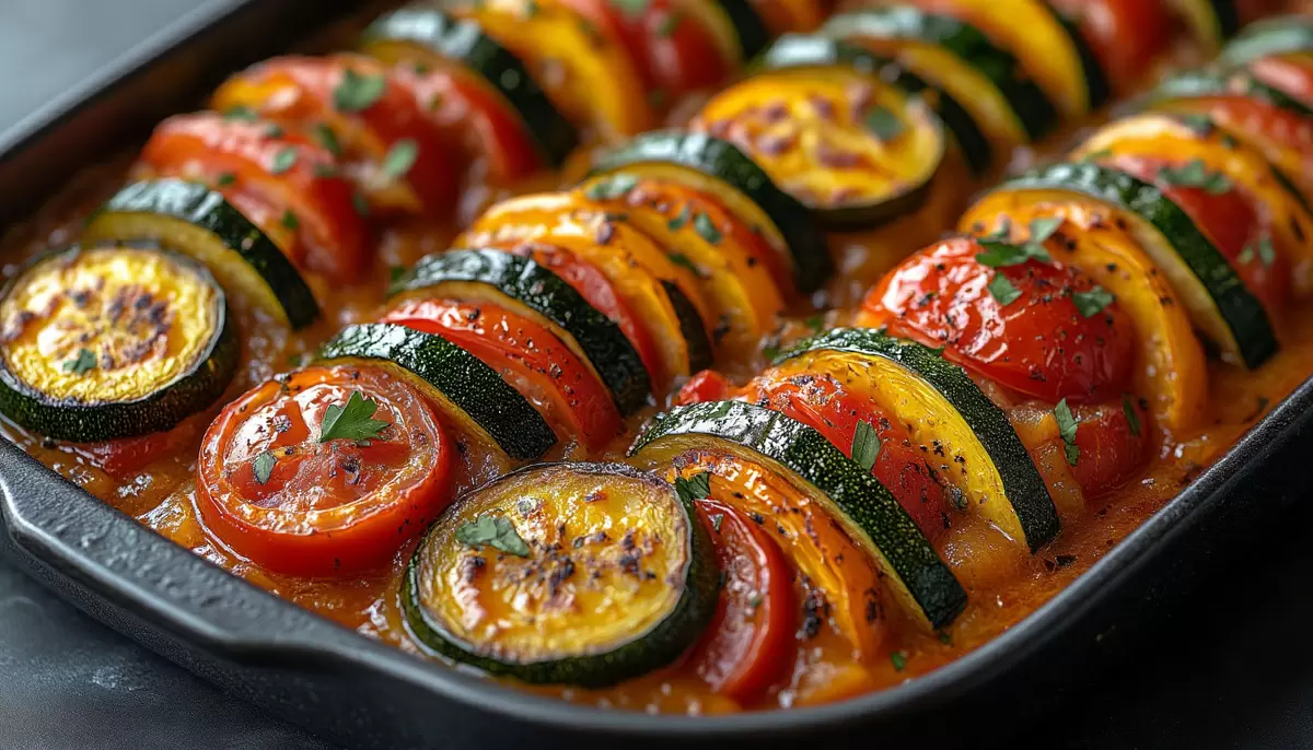 Для разнообразия можно придать блюду другую форму, выстраивая овощи в виде башенок или предварительно обжарив их для более нежной текстуры. Веганская версия ничем не уступает оригиналу — просто наслаждайтесь этим полностью растительным шедевром!