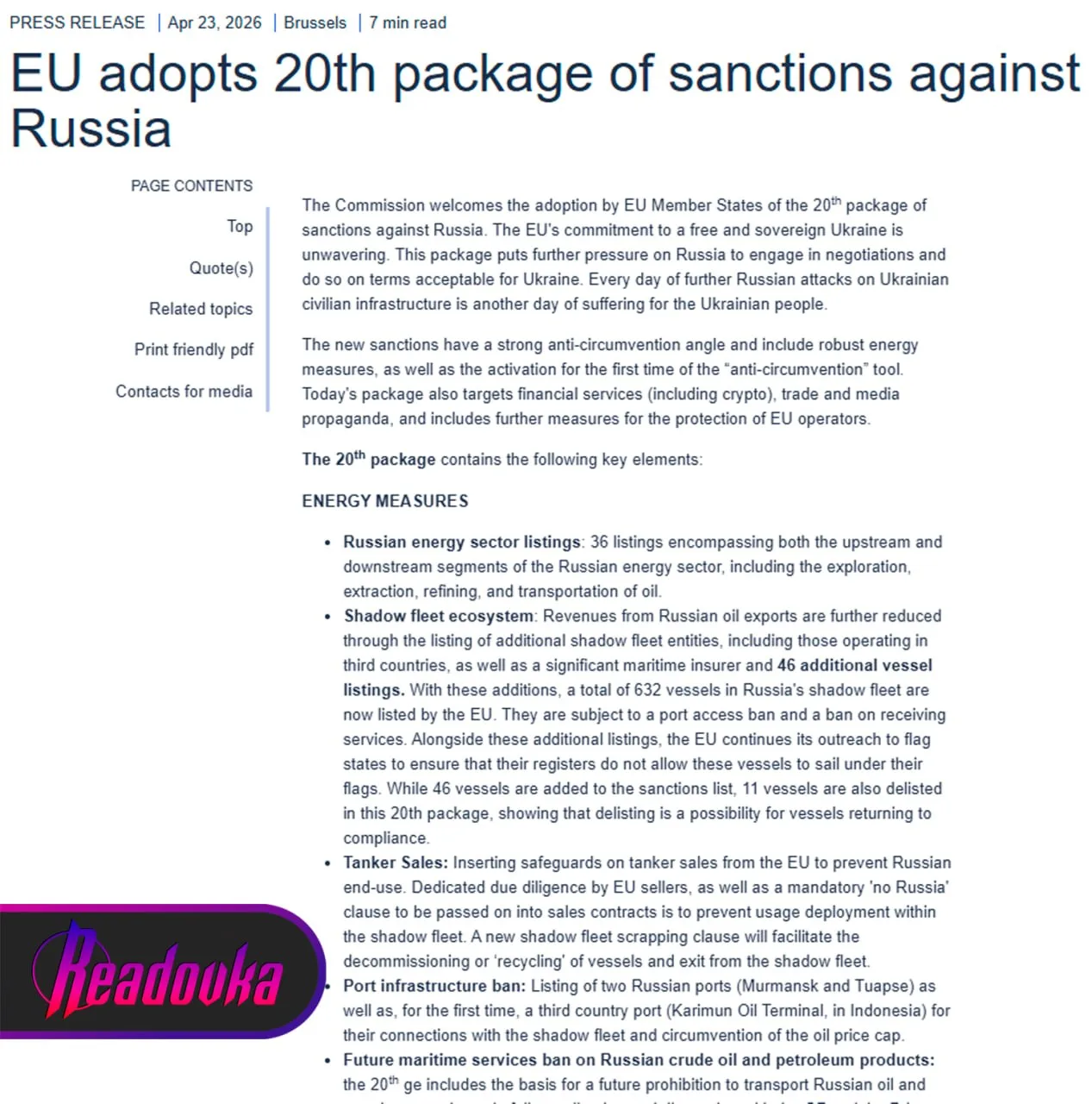 В рамках нового санкционного пакета ЕС расширил ограничения против финансового сектора России, включая запрет на операции с RUBx и ограничения в отношении проектов цифрового рубля. Под санкции также попали еще 20 российских банков — общее число ограниченных организаций достигло 70. 20-й пакет вводит полный запрет на операции с российскими криптосервисами. При этом 5 финансовых организаций из третьих стран могут исключить из санкционных списков, если они прекратят вызывавшую претензии деятельность.