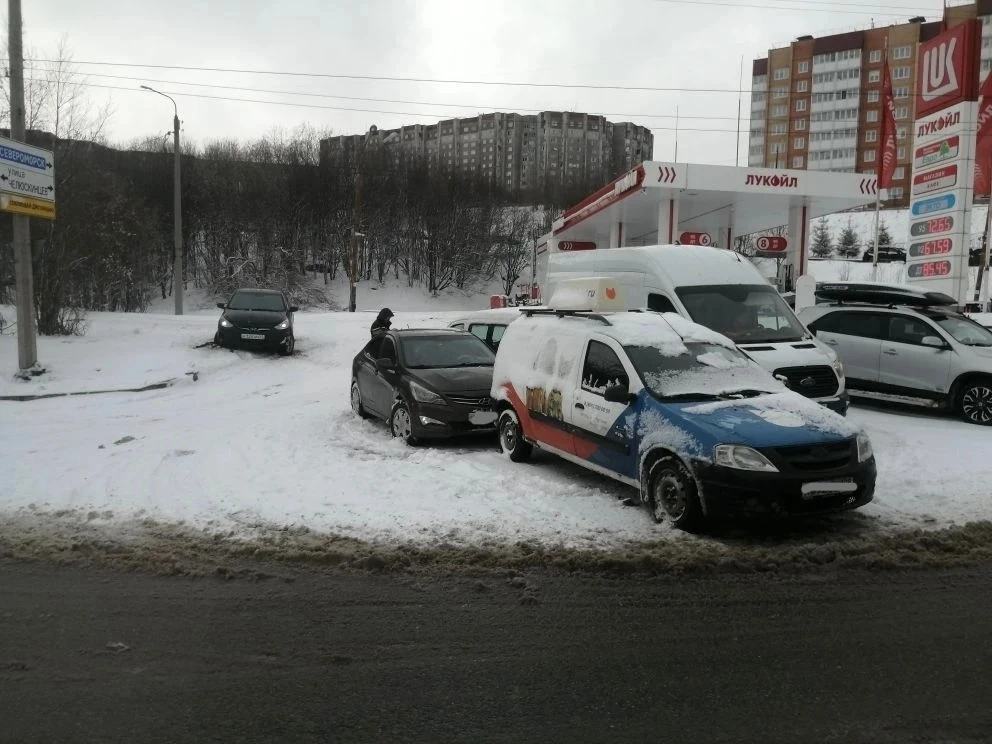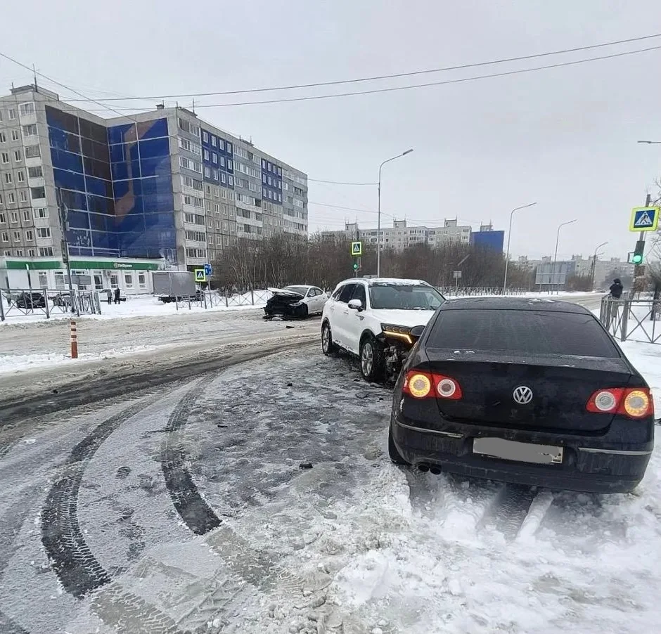 В Мурманске на улице Шабалина водитель, управляя автомобилем «Киа Соренто», проигнорировав запрещающий сигнал светофора, не уступил дорогу транспортному средству, в результате чего допустил столкновение с автомобилем «Хендай Элантра». После столкновения автомобиль «Киа Соренто» отбросило на встречный автомобиль «Фольксваген Пассат».