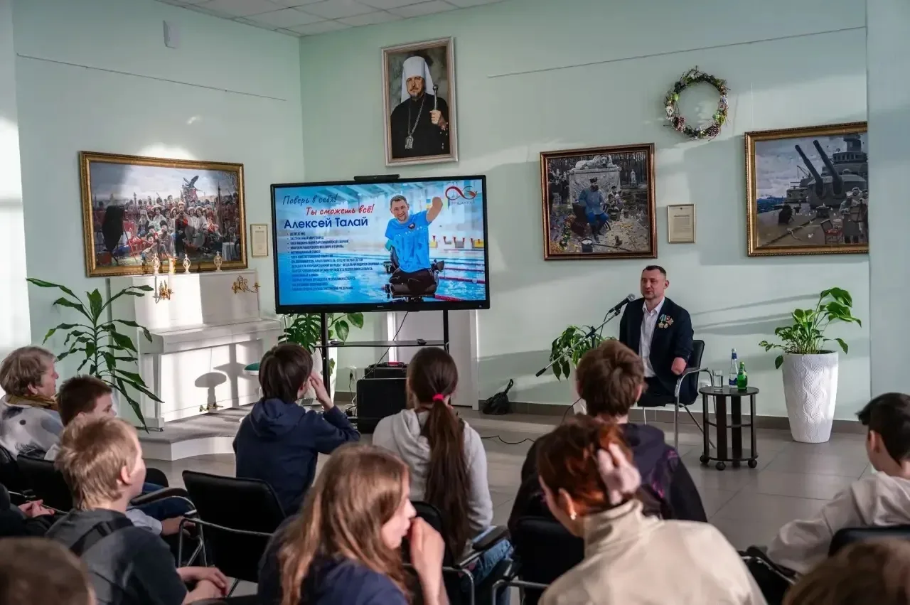 В Мурманской области гостя ожидала насыщенная программа работы. В воскресенье 26 апреля Алексей провел две встречи с молодежью Мурманска в формате «Арктического диалога» – в Детской театральной школе и Губернаторском лицее, затем пообщался с ранеными бойцами в Кольской больнице, с ветеранами и семьями участников СВО – в отделении Фонда «Защитники Отечества», с параатлетами – в духовном реабилитационно-спортивном центре при храме Спаса на Водах. В понедельник 27 апреля паралимпиец встретился с военнослужащими и молодежью Североморска, а вечером – с мурманской общественностью в зале областной филармонии.